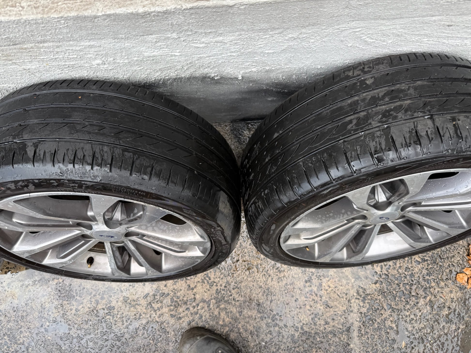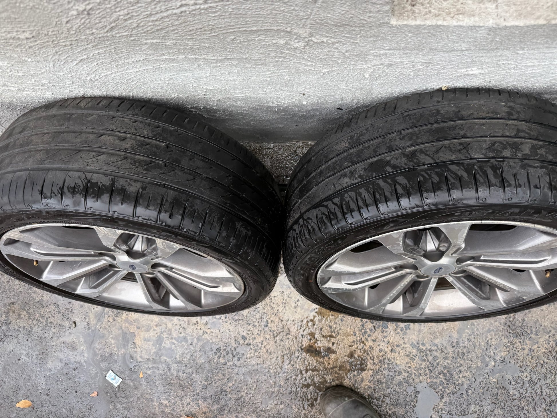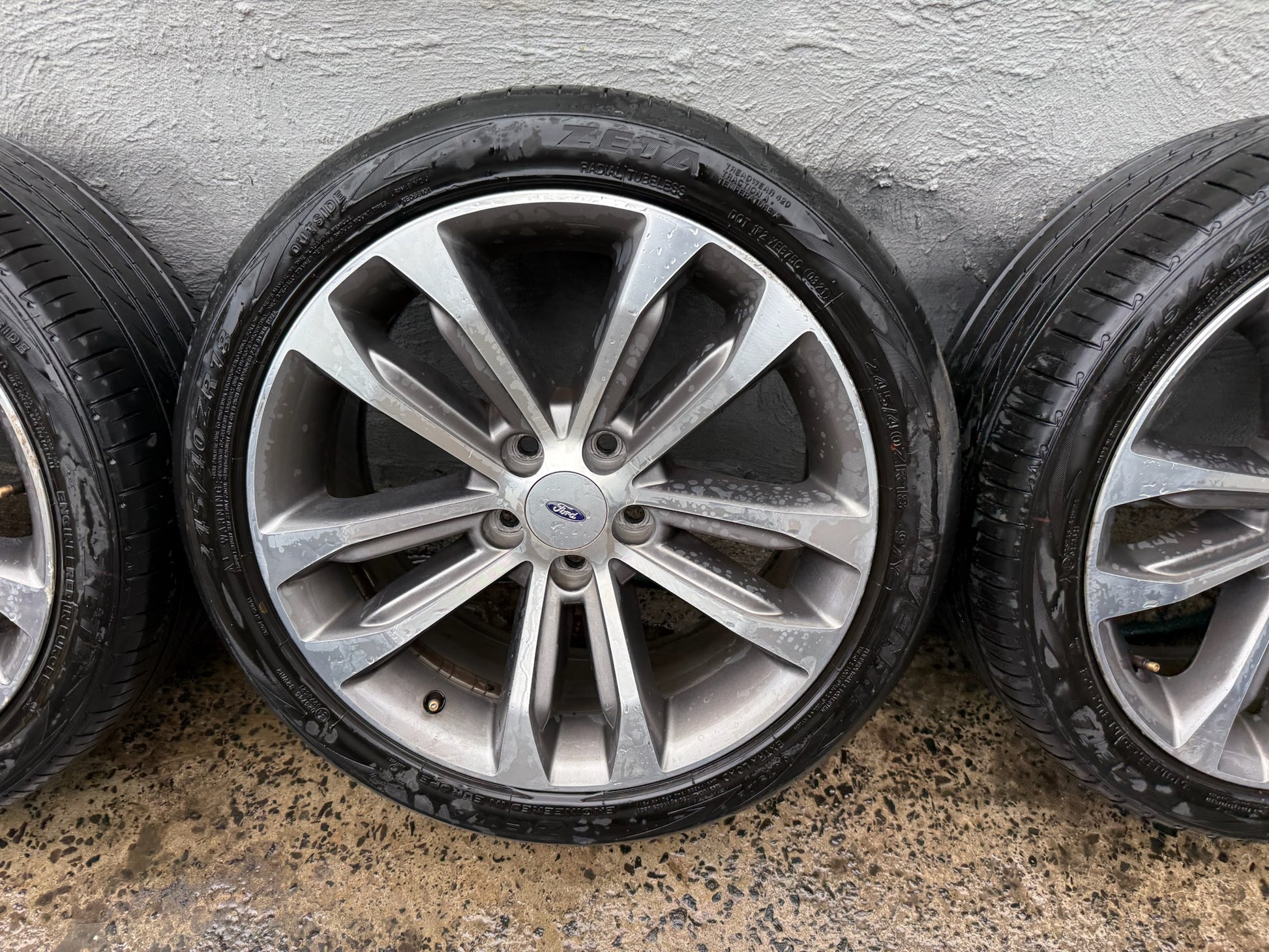 No cracks, buckles or flat spots. Tyres have approximately 90% tread. 245/40R18 tyre size. 18x8. ET36.5. Stud pattern 5x114.3 (Ford, Toyota, Mitsubishi, Mazda, Honda, Nissan etc).