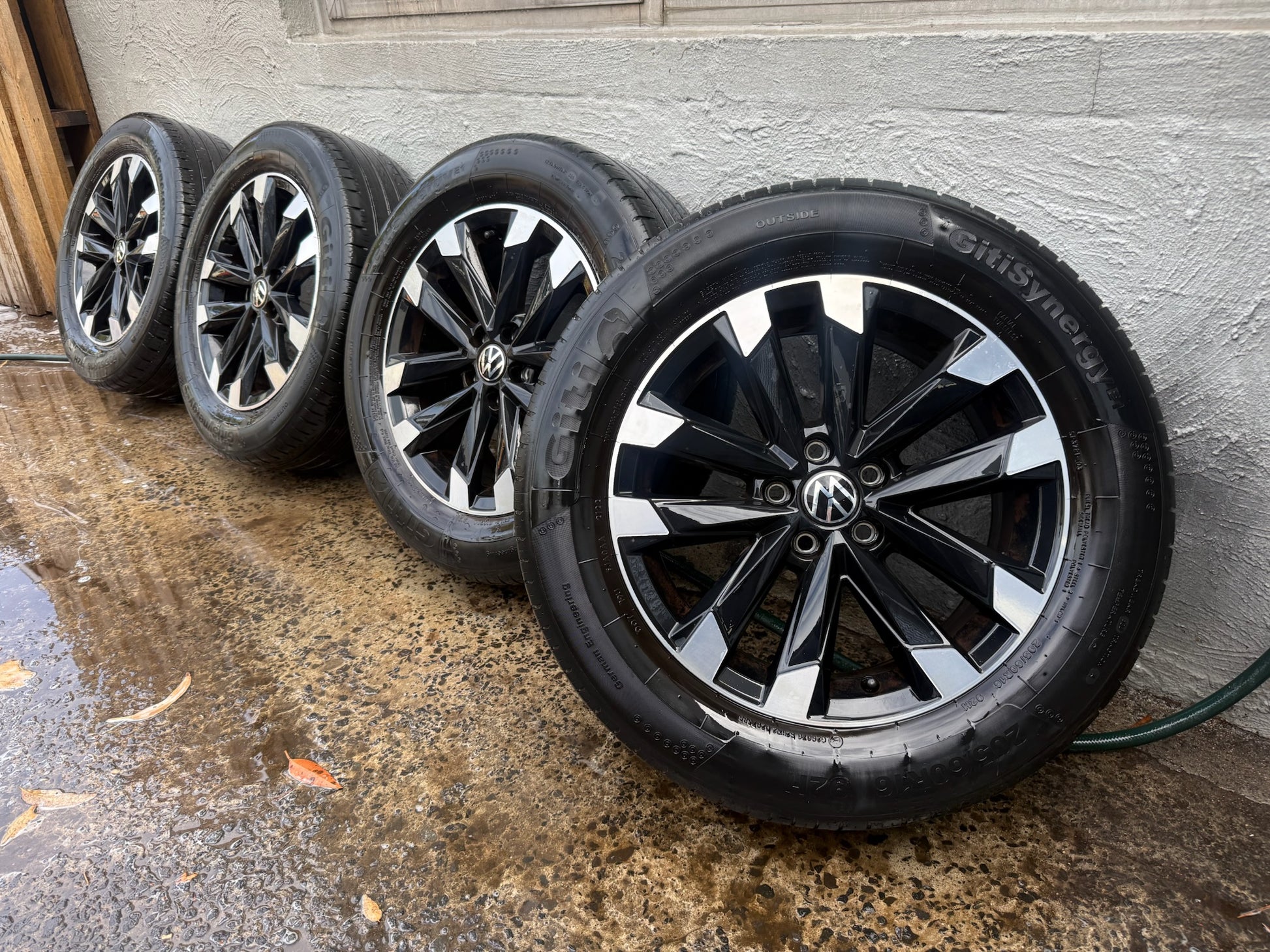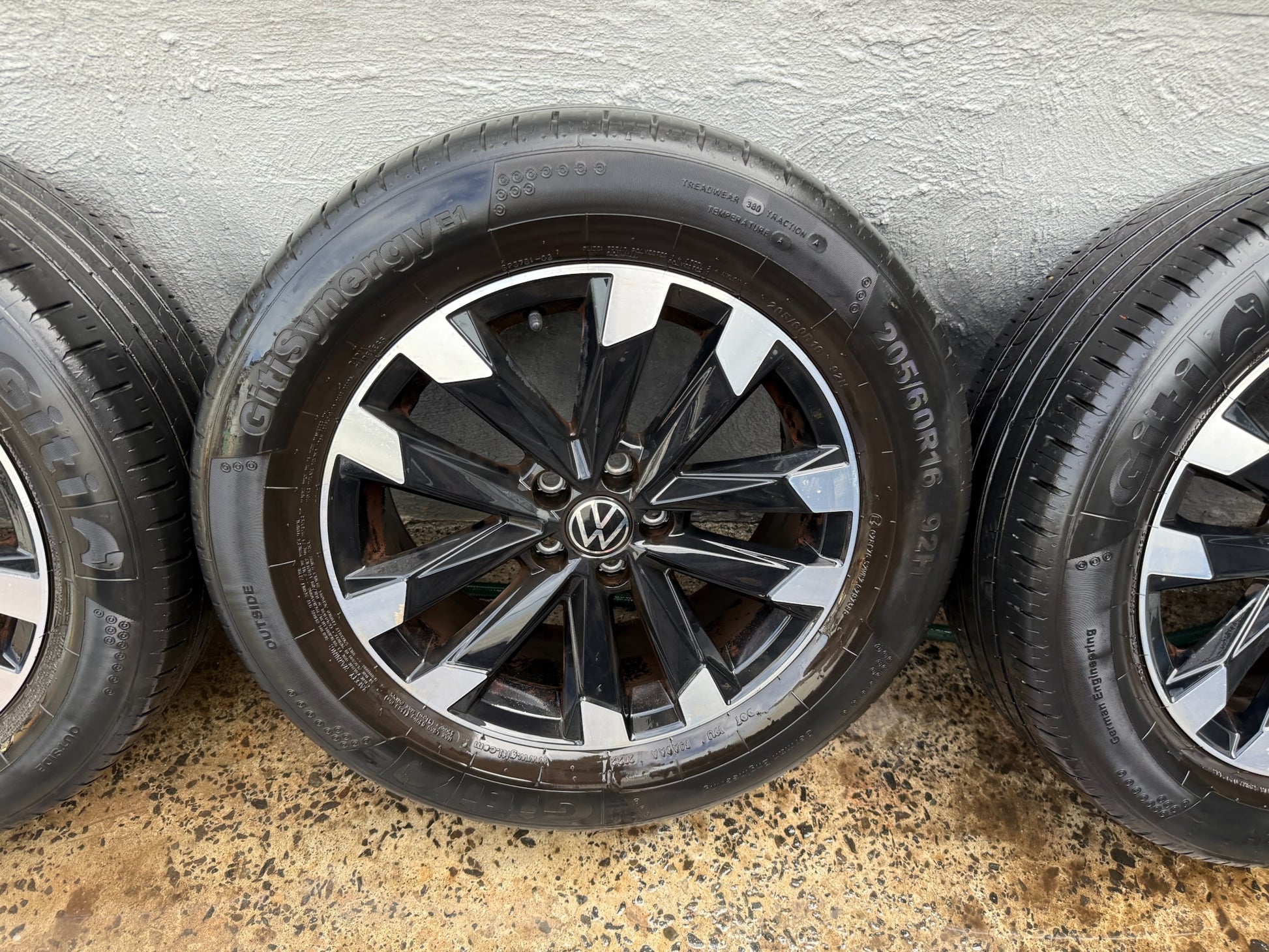 Volkswagen T-Cross 16” Alloy Wheels with Good Tyres. No cracks, buckles or flat spots. Tyres have approximately 75% tread. 205/60R16 tyre size. 16x6. ET35. Stud pattern 5x100 (Toyota, Subaru etc). Part number - 2GM601025C. Have been balanced and are ready to go straight on. Pickup from Highett or delivery is available for an extra cost, anywhere in Australia. Call or text anytime. Will not sell individually. Sold as a set only. S/N #10753